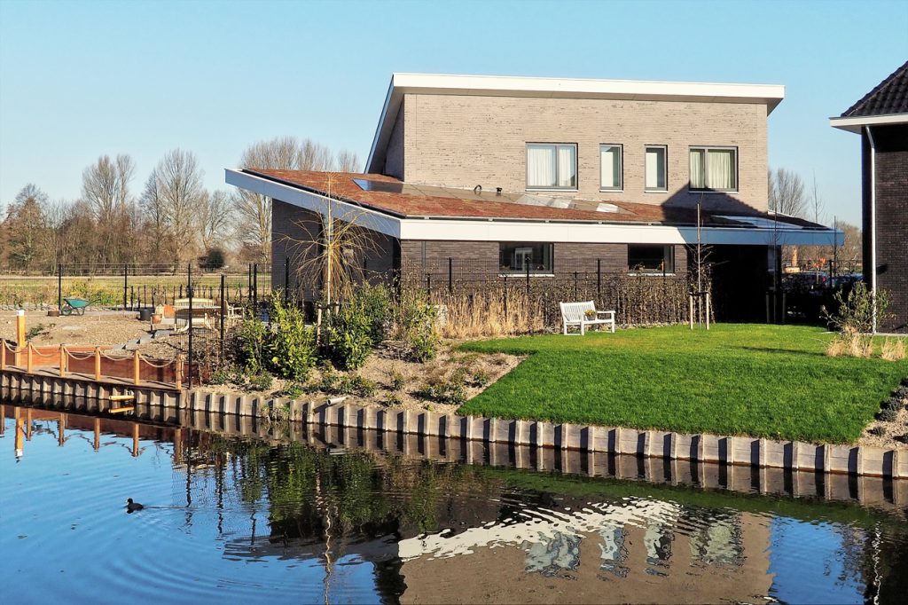 Een ruime en comfortabele levensloopbestendige woning. Onder het flauw hellende sedumdak bevinden zich de slaapkamer met badkamer en inloopkast. De badkamer is voorzien van Airspot licht- en luchtventilatie. Op de verdieping is er ruimte voor gasten.